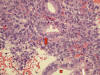 estromal. Flotando en la sangre se hallan tiras de epitelio superficial