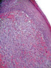 Salpicado de eosinófilos en el espesor de la lesión (HEx200).