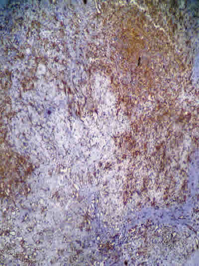 Las células neoplásicas inmunorreaccionan con marcadores endoteliales (CD31x100).