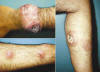 a esta entidad como NH. Fotografías de las lesiones en la muñeca (izquierda,