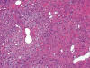 Se trataba de una lesión dérmica profunda, bien definida y no encapsulada, recubierta por epidermis normal (fig. 1), constituida por una proliferación de densidad celular variable de células de núcleos ovoides o alargados, sin atipia, inmersos en un estroma colagenizado con abundantes vasos, algunos ramificados (figs. 2 y 3), ofreciendo a veces un patrón hemangiopericitoide. La lesión contactaba con el margen de resección profundo.