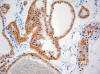 Tinción nuclear positiva con MLH1 en oncocitoma renal indicando la preservación
