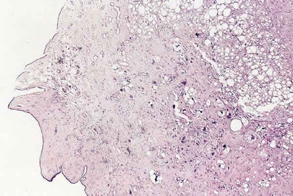 Tumor filodes maligno de mama. Distintos patrones mesenquimales. HE. 10x.