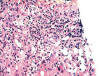 Por evidencias clínicas y humorales de disfunción del injerto se realizó una biopsia por punción. El paciente falleció en insuficiencia hepática 45 días después.